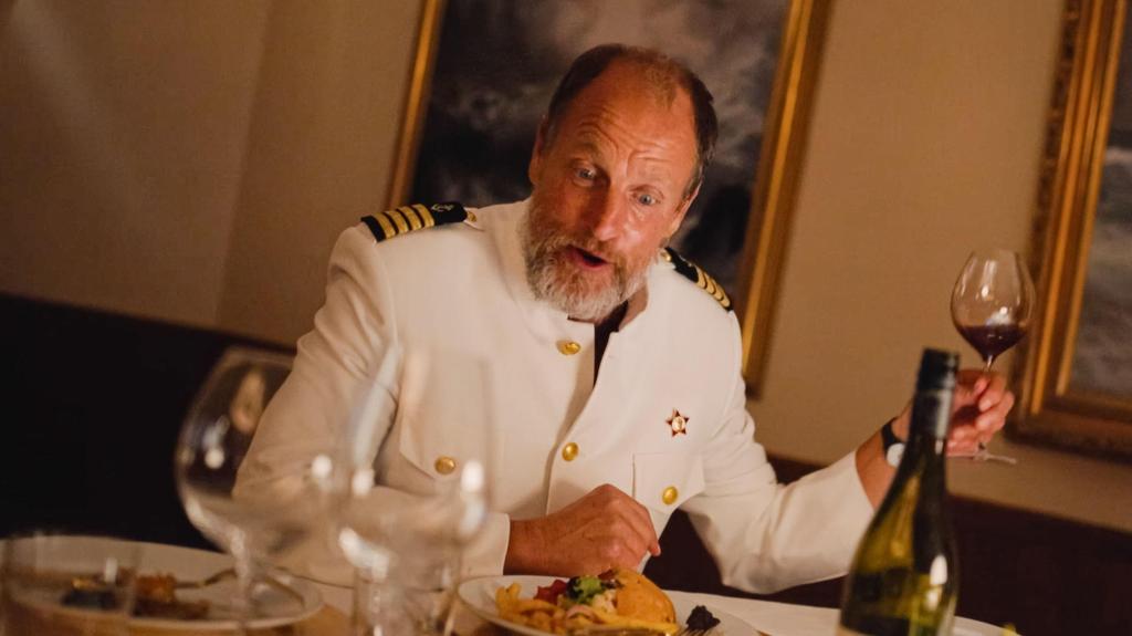 Eenmaal op het Jacht aangekomen, wordt deze toon doorgezet. Het bovendekse personeel dat elkaar voordat de cruise begint elkaar zit op te jutten door heel hard: GELD, GELD, GELD te roepen, waarbij de camera naar een dek lager gaat waar de schoonmakers zitten die de vuile klusjes mogen opknappen voor een schijntje. Eenmaal op zee als de passagiers met de meest vreemde verzoeken komen voor de bemanningsleden, lijkt het wel alsof je naar een aflevering van Below Deck (een reality-tv programma op Netflix) zit te kijken. En dan maken we kennis met The Captain, een rol gespeeld door Woody Harrelson. Misschien is dat wel de beste rol uit de gehele film, zeker op het moment dat The Captain tijdens de storm in zijn hut beland met de steenrijke Rus Dimitry. Het blijkt dat Dimitry een kapitalist is en The Captain een communist uit Amerika, waarbij de twee zo dronken als een aap de pijnpunten van de Amerikaanse geschiedenis even aankaarten. De storm is ook meteen het meest bizarre stuk uit de hele film, iets waarbij de regisseur zich iets had mogen inhouden op het hete kots en poep festijn.