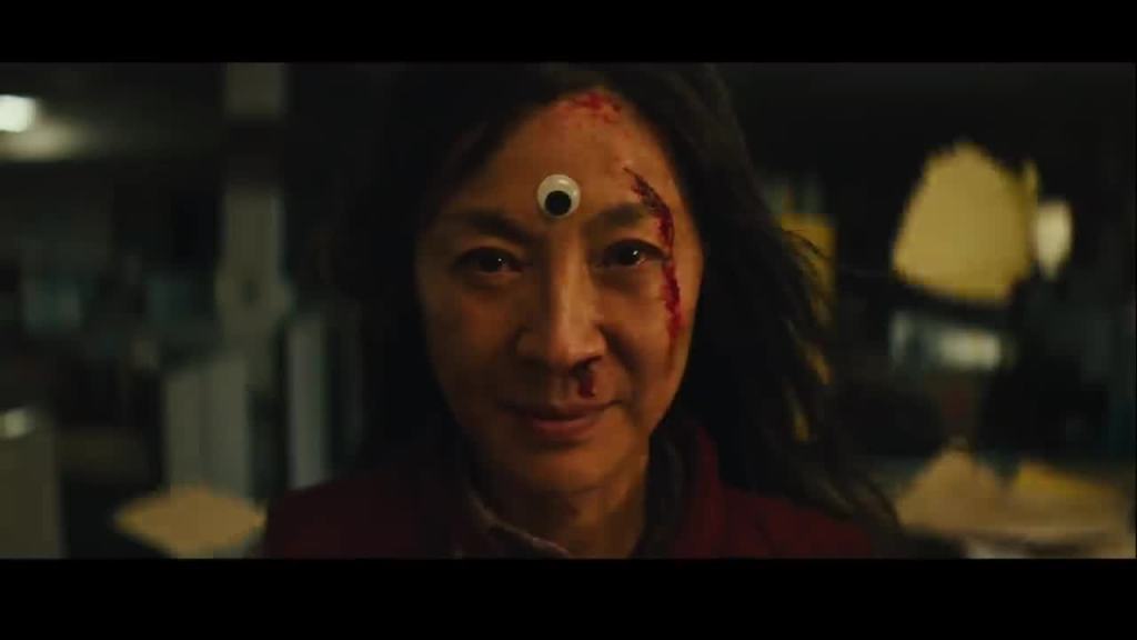 De film is absurd, raar en zit vol met what the f momenten. Het begint allemaal normaal met de wasserette en de voorbereiding van het Chinese nieuwjaar feest, dochter Joy die haar lesbische partner wil voorstellen, maar Evelyn die dat stil houd voor de ouderwetse opa Gong Gong, ja er zit ook nog een boodschap in de film over acceptatie natuurlijk. Afijn, uiteindelijk gaat Evelyn met haar man en haar vader naar het belastingkantoor en in de lift begint de verwarring al. Waymond blijkt niet wie hij is en probeert Evelyn uit te leggen dat er een heel multiversum aanwezig is en dat zij de Evelyn is die het multiversum moet redden. Het wordt namelijk bedreigd door een entiteit die een of ander alles opslurpend zwart gat heeft gecreëerd dat alles zal vernietigen. Kan je hem nog volgen? Evelyn moet leren schakelen tussen de Evelyns uit alle multiversums om grote krachten te krijgen. Zo is er een wereld waar Evelyn een kung fu expert is, een waar ze langs de weg met een pizza bord staat en zelfs een waar mensen hotdogs voor vingers hebben, ja je leest het heel goed. Om seks met elkaar te hebben duwen ze de hotdogs in elkaars mond net zolang er mosterd uit komt.