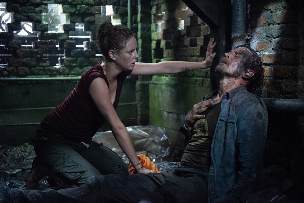 Als inspiratiebron gebruikte men de situatie die ontstond tijdens de orkaan Florence die in 2018 over Amerika heen raasde. Er ontstond een zeer gevaarlijke situatie, doordat alligators de vrije hand dreigde te krijgen door de overstromingen die plaatsvonden. In de film komt zwemster Haley samen met haar vader vast te zitten in de kruipruimte onder het huis dat door de zware regenval onderwater begint te lopen. Nou hoeven we van enige vorm van realisme natuurlijk helemaal niets te verwachten, maar een beetje geloofwaardigheid had toch wel op zijn plaats geweest. De film neemt zichzelf bloedserieus en daar wringt de schoen enorm. Vader Dave ligt zwaargewond onder het huis, met een open botbreuk, maar het blijkt uiteindelijk met een paar pijntjes eenvoudig te zijn om het bot weer naar binnen te drukken en weg te lopen. Ook Haley wordt gegrepen door een alligator en hoewel de mensen buiten hun ledematen verliezen met een hap, houdt zij een lelijke bijtwond over waarbij er wordt gereageerd alsof ze zich aan een papiertje heeft gesneden. Vervolgens loopt, zwemt en vecht Haley alsof er helemaal niets aan de hand is. Het zijn van die dingen die enorm storend werken, waardoor je als publiek sommige scènes met je hand voor het gezicht zal kijken. En dan is dat niet omdat het zo eng is.
