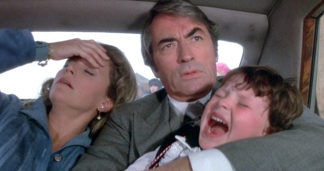 Alsof de film met zijn onderwerp niet al genoeg vraagt om problemen, opent de film ook nog eens met de titelsong “Ave Santani”, dat letterlijk vertaald “heil Satan” betekent. Voor de gelovige lezers onder ons is dat natuurlijk vragen om problemen en problemen had de productie van The Omen dan ook zeker. Aanvankelijk zou de film “The Anti-Christ” gaan heten, maar de productiemaatschappij vond dat regisseur Richard Donner met iets subtielers moest gaan komen. Al snel werd de titel omgedoort naar “The Birthmark” om uiteindelijk de huidige titel “The Omen” in gebruik te nemen. Het is allemaal om het even want de eigenaardigheden beginnen als acteur Gregory Peck en scenarioschrijver David Seltzer beide op verschillende vluchten naar Engeland zitten en beide toestellen worden getroffen door blikseminslag. Natuurlijk kan je dit als toeval beschouwen, maar twee verschillende toestellen die heel ver uit elkaar vliegen op het zelfde moment? Lijkt een beetje raar natuurlijk, maar goed. Laten we het op toeval houden. Maar als daarna het hotel wordt gebombardeerd door de IRA, waar op dat moment een team meeting plaats vond tussen cast en crew, gaat het er toch wel een beetje op lijken dat er een duivelse vloek heerst over de film.